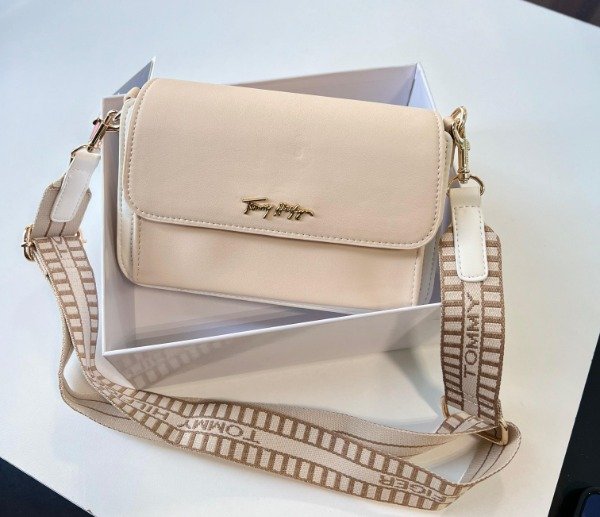 Luce elegante y con mucho estilo con este bolso Tommy Hilfiger en tono beige 🤍, ideal para acompañarte en cualquier ocasión. Su diseño moderno y sofisticado lo convierte en el complemento perfecto para tus outfits diarios 👗✨.